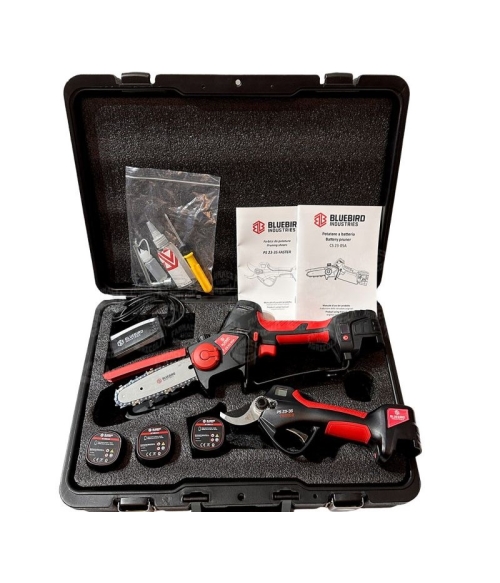 Forbici da potatura PS 23-35 Faster e Potatore PS 23-05A con tre batterie in Kit da Potatura BlueBird Professionale