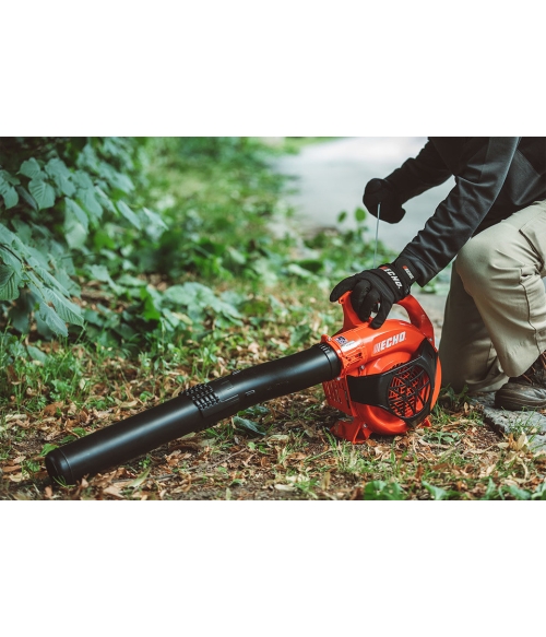 Modello di soffiatore a mano con eccellente capacità soffiante, che permette di rimuovere in modo rapido e comodo detriti, pezzi di legno e foglie depositate sul prato.